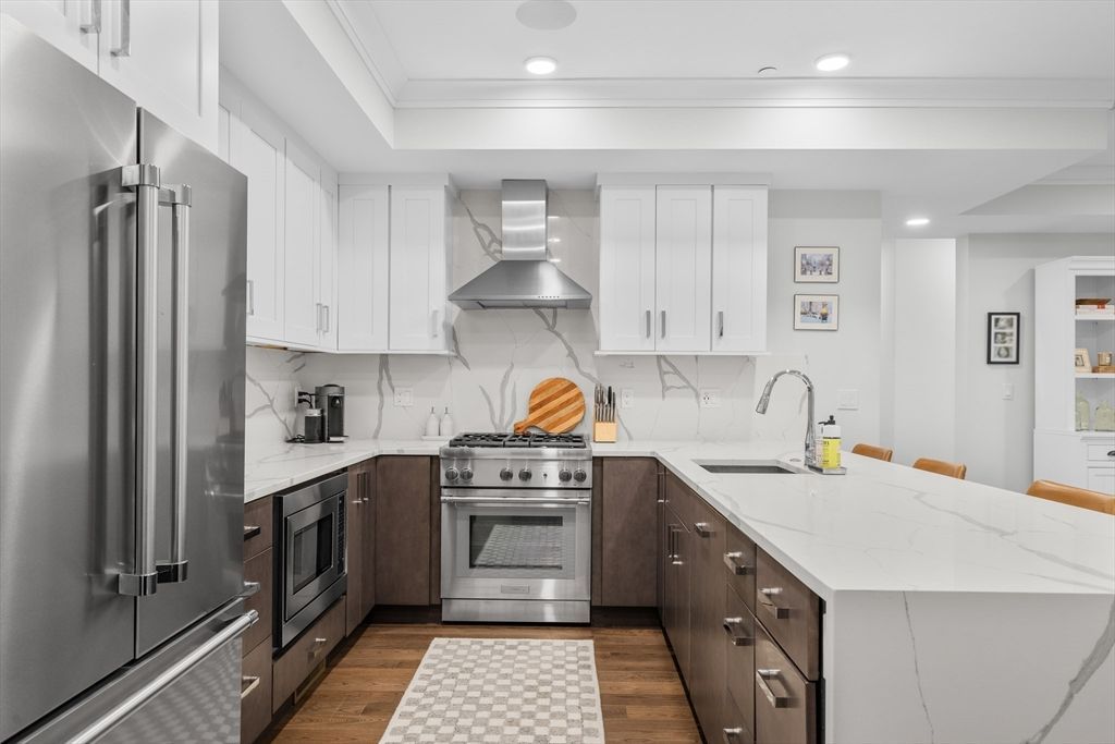 BEST location in Dorchester! Stunning, like-new 2-bed, 2-bath condo designed by Taniya Nayak, with garage parking in the heart of Savin Hill. The open-concept living space features a chefs kitchen with a Thermador range and Calcutta quartz countertops and waterfall-edge backsplash. Enjoy a full dining area, spacious living room, hardwood floors, surround sound, and two private decks. The primary suite offers generous closet space and a spa-like bath with radiant heated floors, double vanity, and a large shower. Additional highlights include in-unit laundry, central A/C, a heated garage parking space, and extra storage. Available June 1. Garage...read more